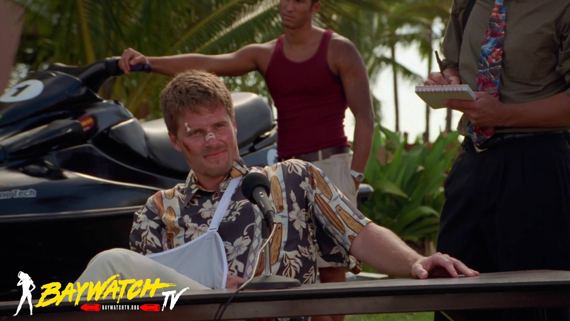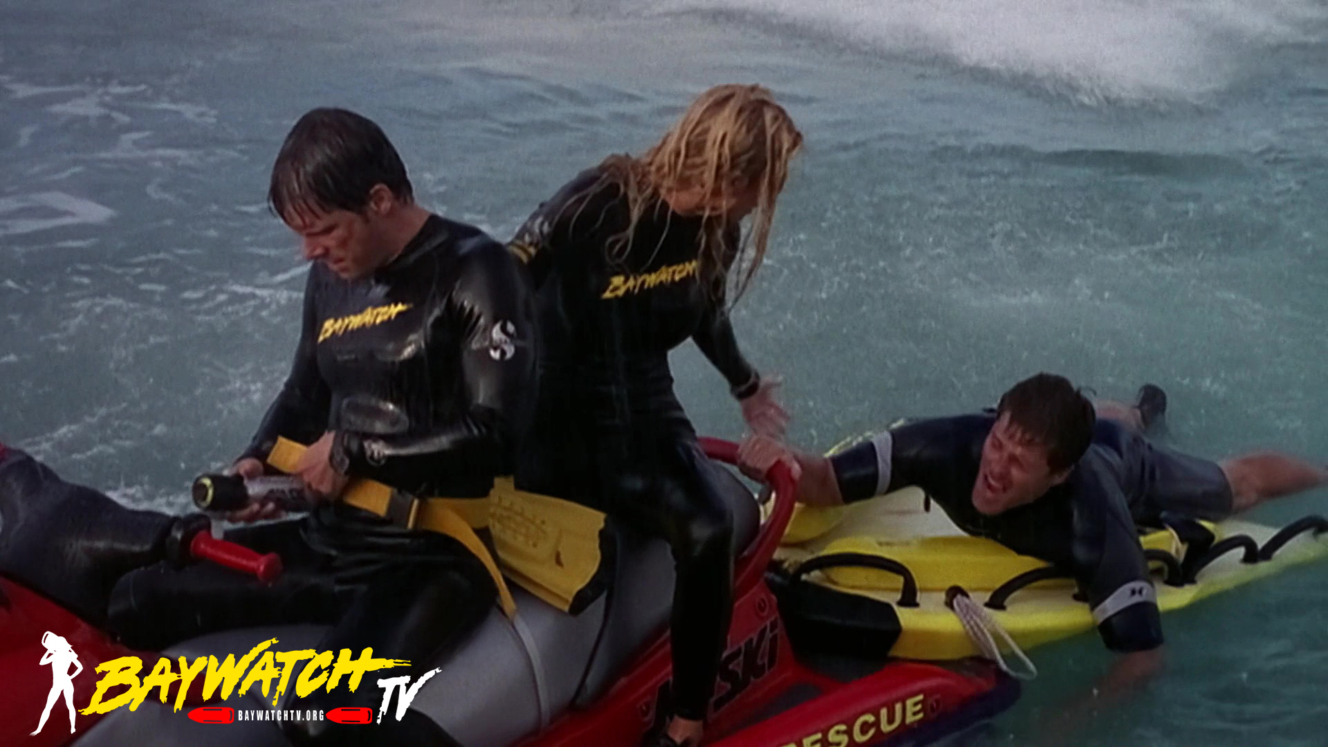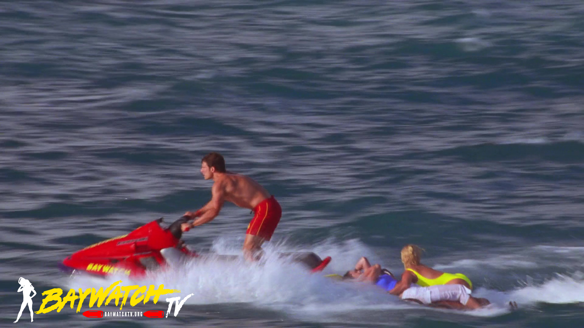 While heading back to the training center, Sean it hit by ZACK MCEWAN, a twenty year old riding his skateboard while carrying his surfboard. Unbeknownst to Sean, Zack is going to be one of the new trainees for the team. Not wanting Sean to know that he is a prospective team member, Zack hastily makes his way out of the area. Further down the road, Zack watches as PEGGY, a pretty nineteen year old, tries to control her younger brother, CASEY, who wants to dive off the road. Using Sean’s very words, Zack warns the youth to take it easy. Of course, Casey doesn’t listen and moments later has dived off the cliff. Fortunately, daredevil jet ski champion CLIFF TYLER is in the area and radios the training center for help. Sean and Leigh head out. Sean warns Cliff to stay away, but ever the hot dogger, Cliff wants to get into the action. Instead, he causes trouble as Peggy’s hair gets caught in the intake of his jet ski. Sean is forced to cut the tail pipe in order to free her hair. Cliff at first is miffed that his vehicle was damaged, but plays up the heroics for bystanders. He is in town for an exhibition race that is being held partially to raise awareness for Sean’s team. Sean is not at all happy that he must once again work with Cliff: they have some unresolved business in their past.