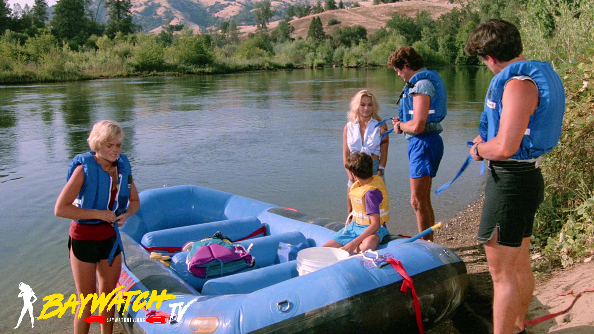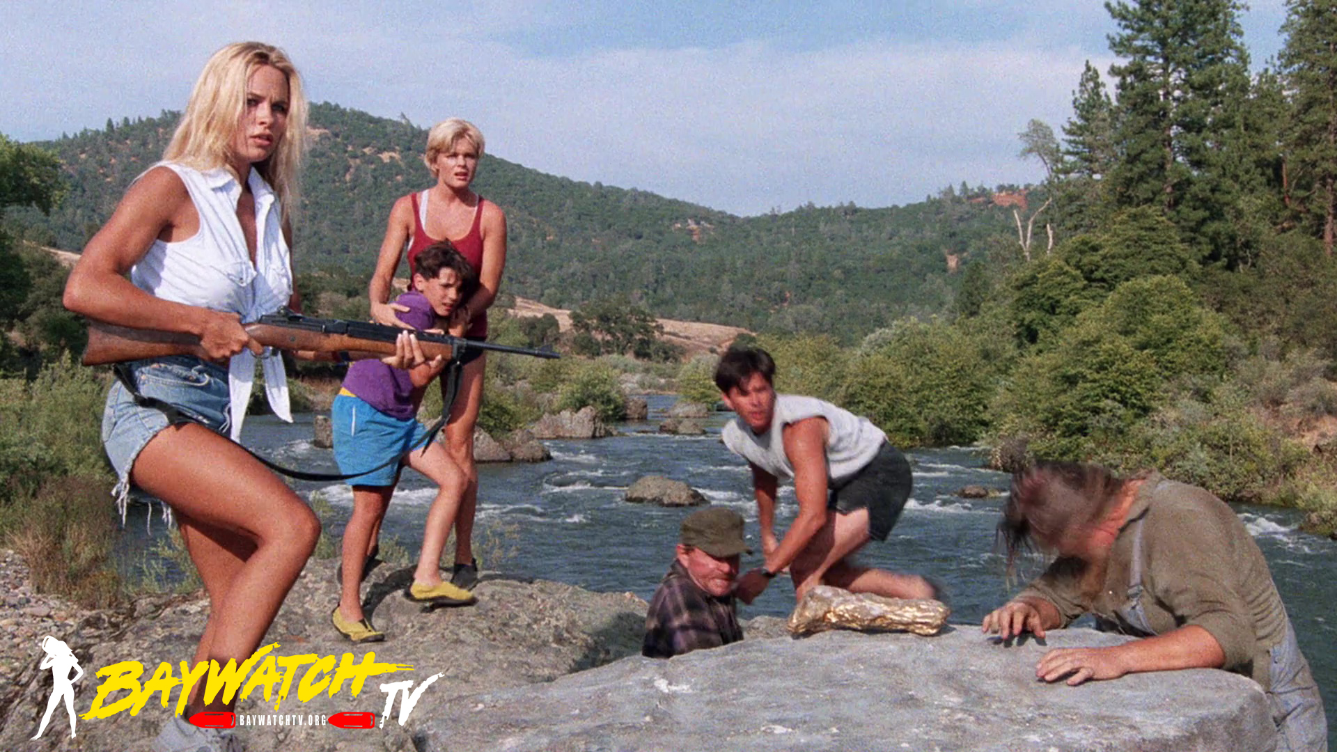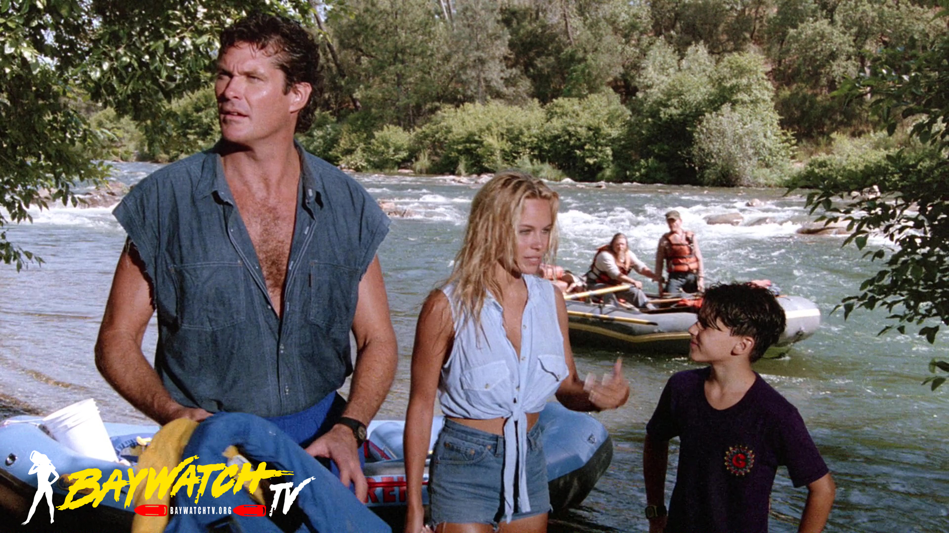 A local sheriff leads Mitch and the gang through Alex’s ransacked cabin, but has no clues as to how he drowned–he only knows that his body was washed into “The Devil’s Mouth,” an underground river at the foot of treacherous rapids. Atattered will leaves only more mystery, bequeathing to Mitch a valued treasure map at “the secret spot,” a spot of which Mitch has no recollection. Hobie can’t wait to find what he’s convinced is buried gold treasure, and everyone heads to the river for a day of whitewater rafting. To Mitch’s surprise, their river guide is CJ Parker, a stunningly beautiful ex- Baywatch lifeguard who followed her heartbreaking boyfriend to gold country.