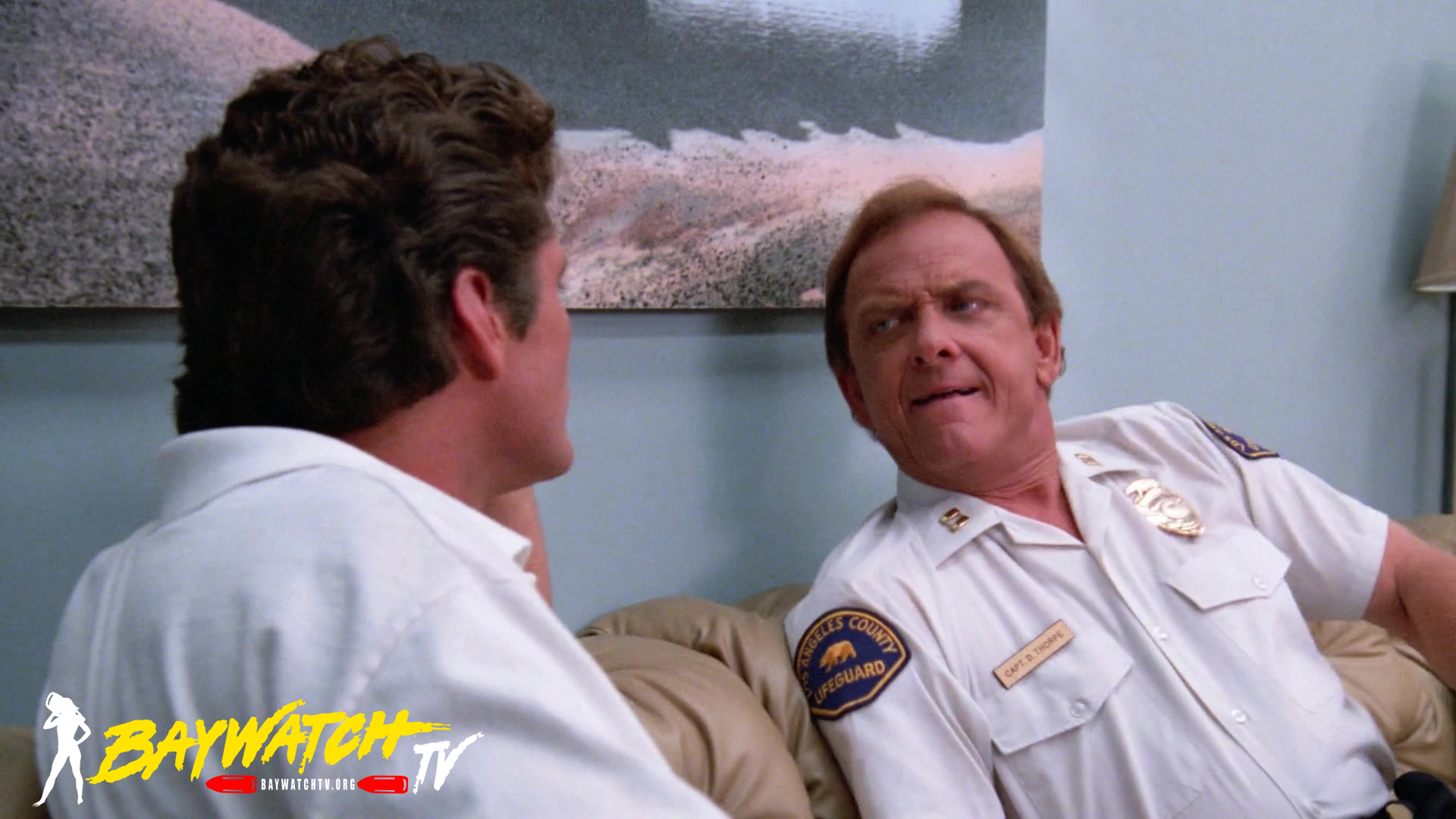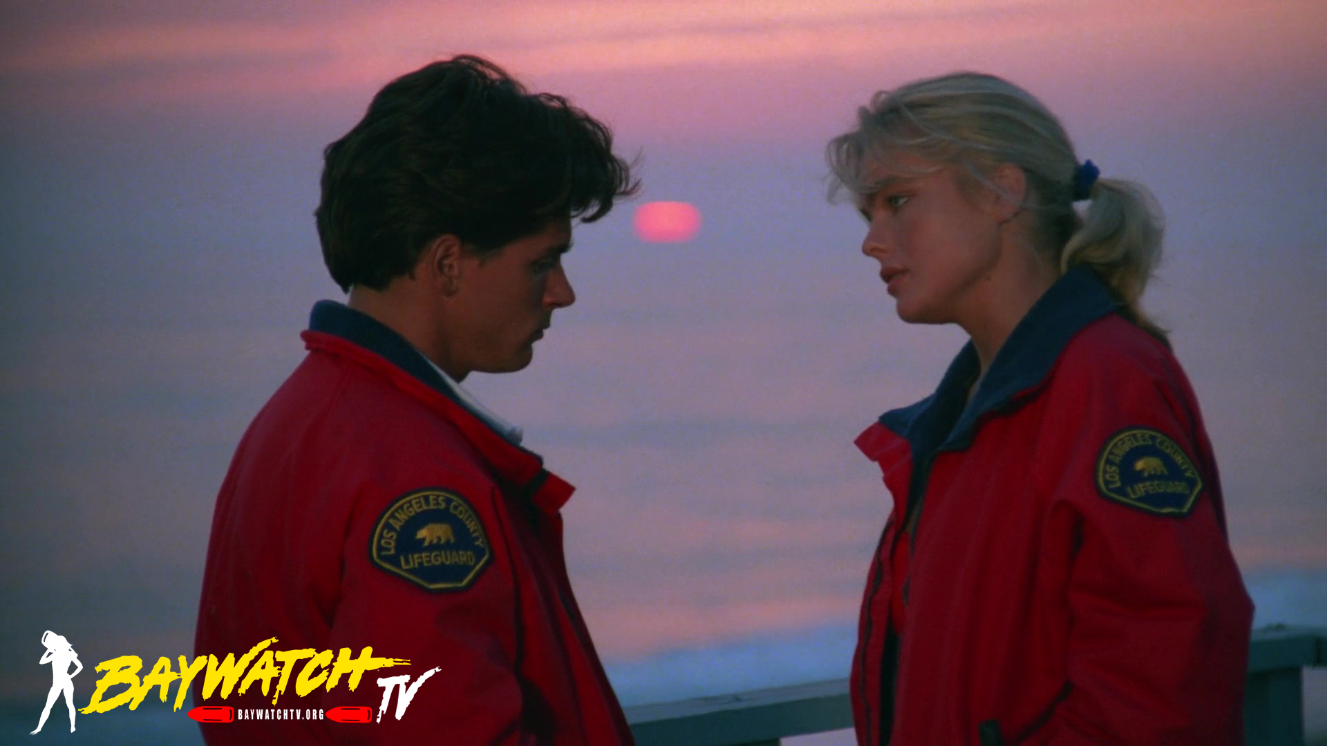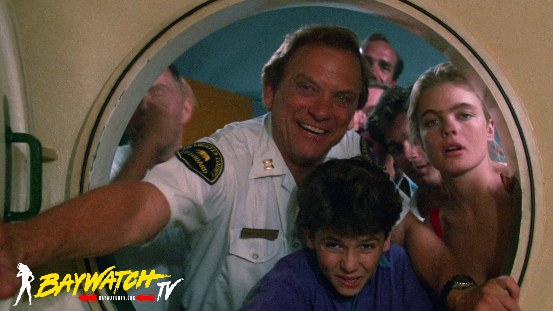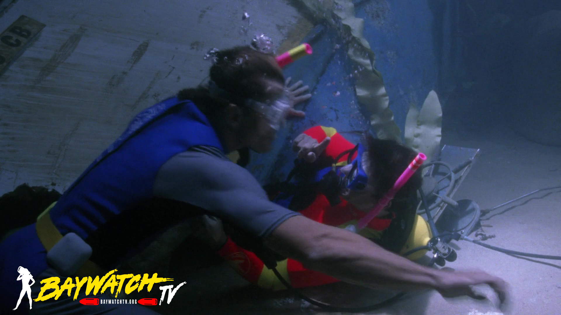 After torturous minutes of waiting, Mitch free dives and attempts to free Hal from the wreckage. It is no easy task, and while trying to lift the shattered hull, both Mitch and Hal are running out of air. In a final Herculean effort, Mitch clears Hal from the wreck and brings him topside to the waiting Coast Guard helicopter. On board the ‘copter, Eddie and Newman decide to go to Catalina Island, which has two decompression chambers. Upon their arrival, they find that only one is operable. Mitch insists that Hal be placed in the working chamber despite his own grave condition. In order to save Mitch’s life, they will have to fly him to Baywatch headquarters where there is a working decompression chamber. The delay could be fatal.
