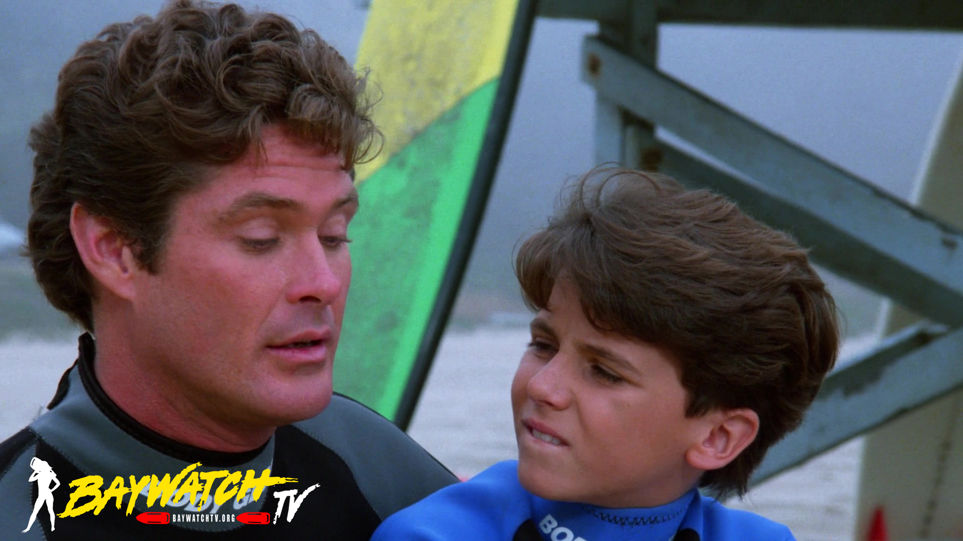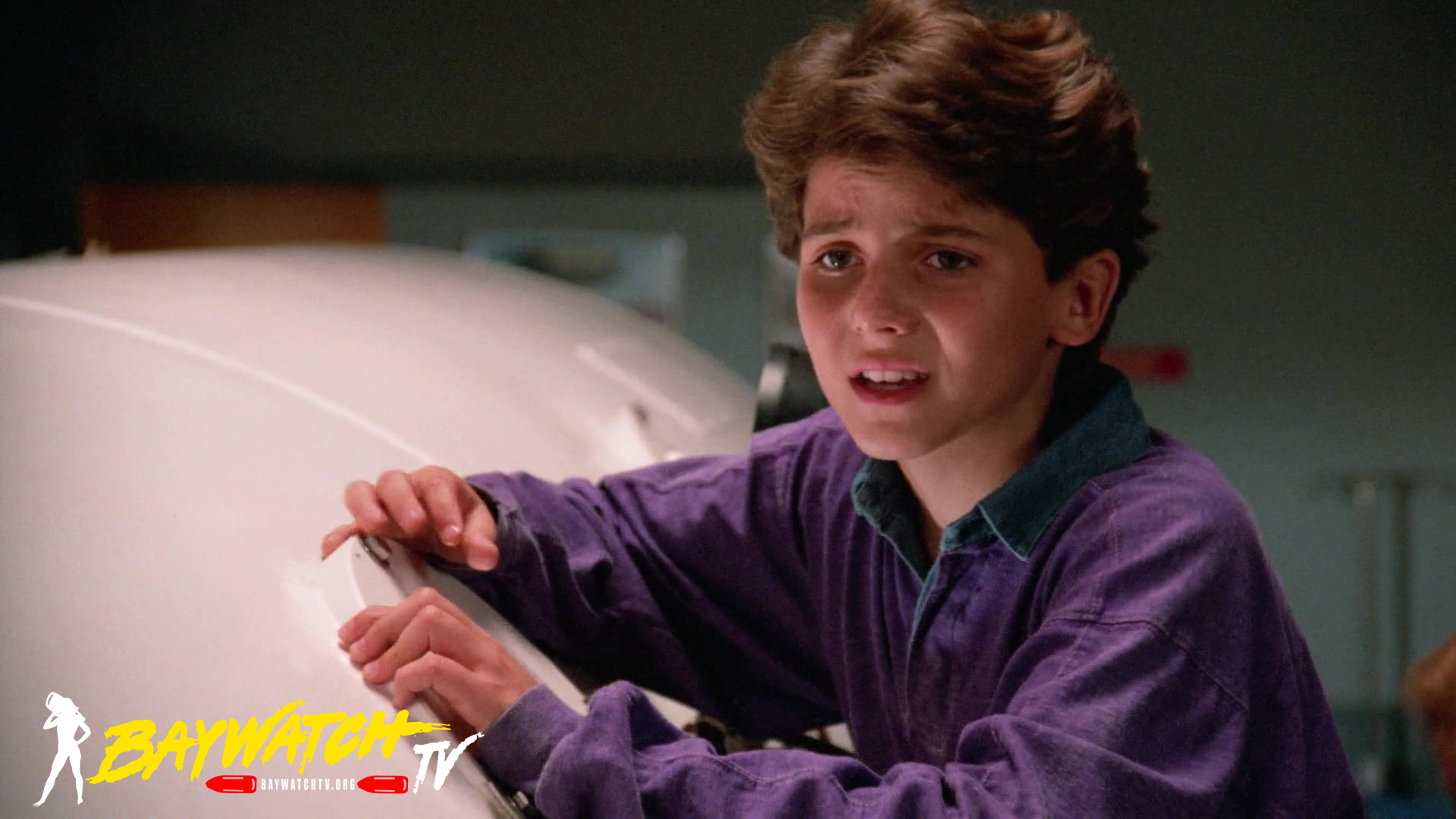 Craig writes Mitch about a perfect job. It will be substantial raise, but Mitch will have to quit lifeguarding and travel, and that means sending Hobie to live with his mother, Gail. Mitch goes out on his surfski to think it over and comes across Cooper, a frantic 12-year old boy in a motorboat. His father Hal is trapped beneath a sunken wreck they were investigating on the ocean floor. He has only 15 minutes of air left in his tank. Mitch radios Baywatch headquarters and tells them that if they’re not there within ten minutes, he’s going down sans scuba gear to save Hal.
